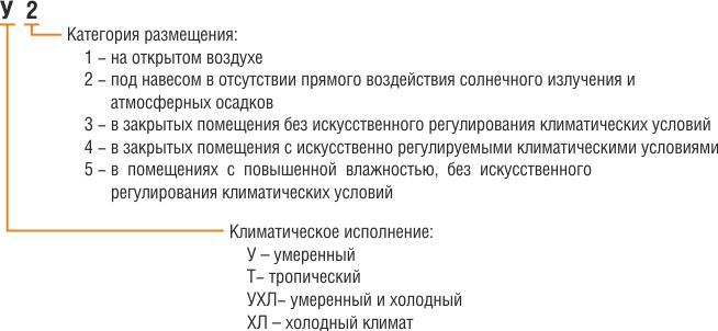 | Климатическое исполнение | Категория размещения | Верхнее значение рабочей температуры, °С | Нижнее значение рабочей температуры,°С | Максимальное значение относительной влажности, % |