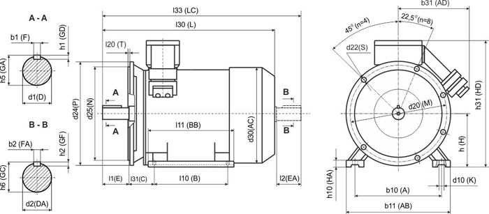 | 22 | ВА 180 S2 | 198 | ВА 180 S4 | 205 | ВА 200 М6 | 285 | ВА 200 L8 | 310 |