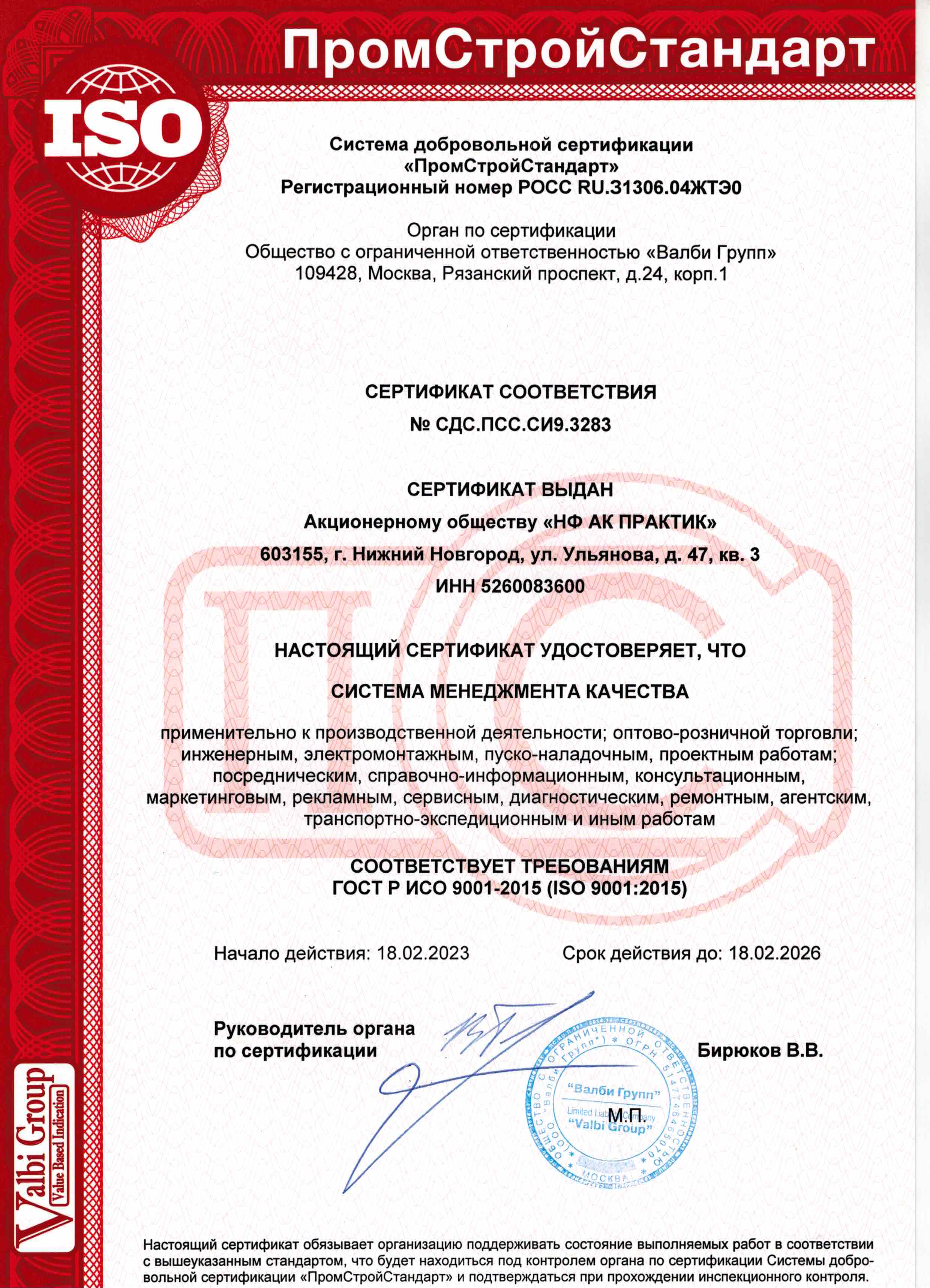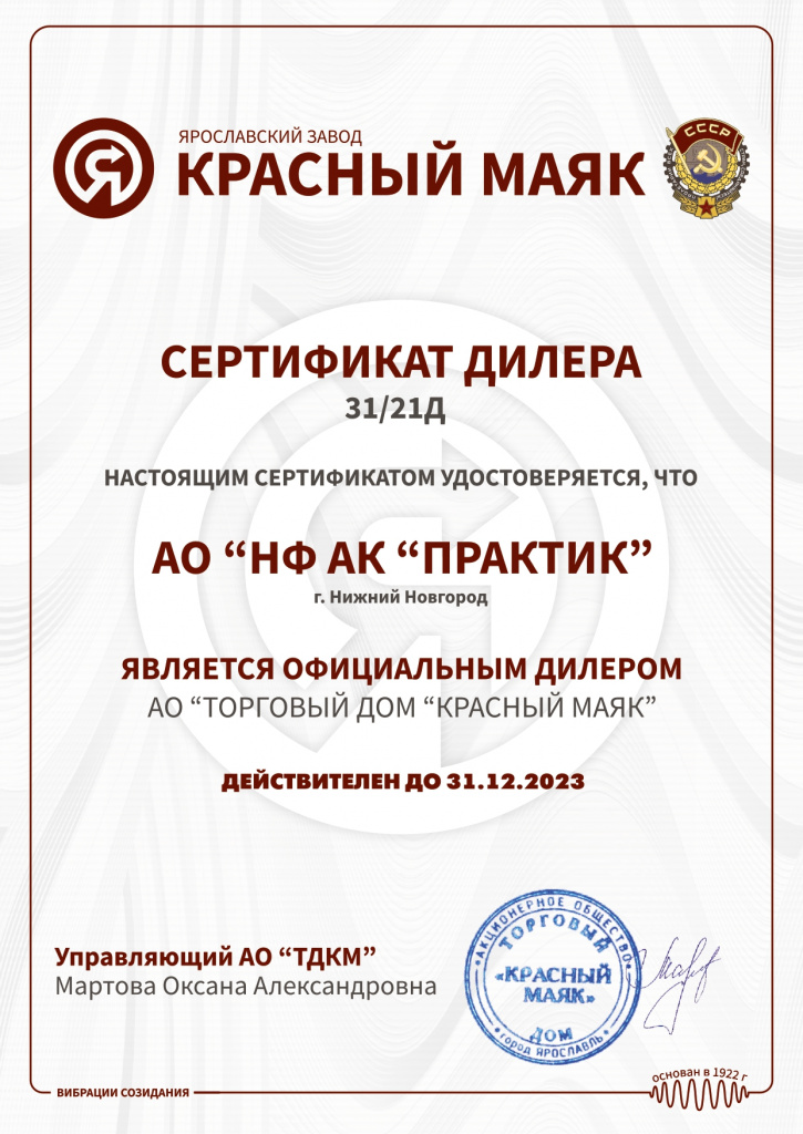 Сертификат АО "Торговый дом "Красный Маяк"