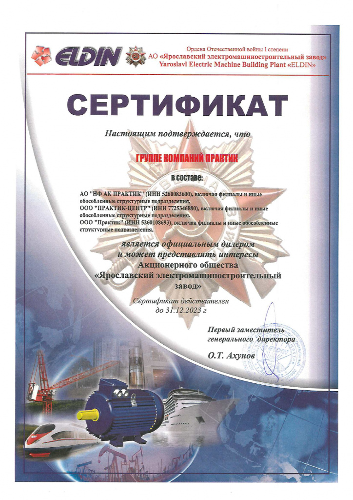 Сертификат официального дилера АО "Ярославский электромашиностроительный завод"